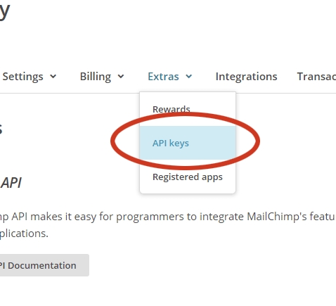 1) Login to Mailchimp and on the top-right click on your profile and click on Account.