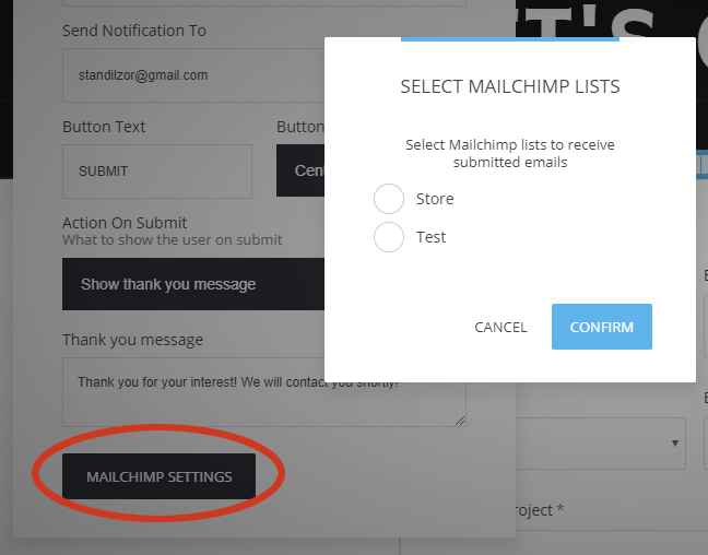 Once connected now every form, members or store will have the option to send the client information to Mailchimp to make your email marketing campaigns. Let's see below how to send the inputs from a form to your Mailchimp lists.